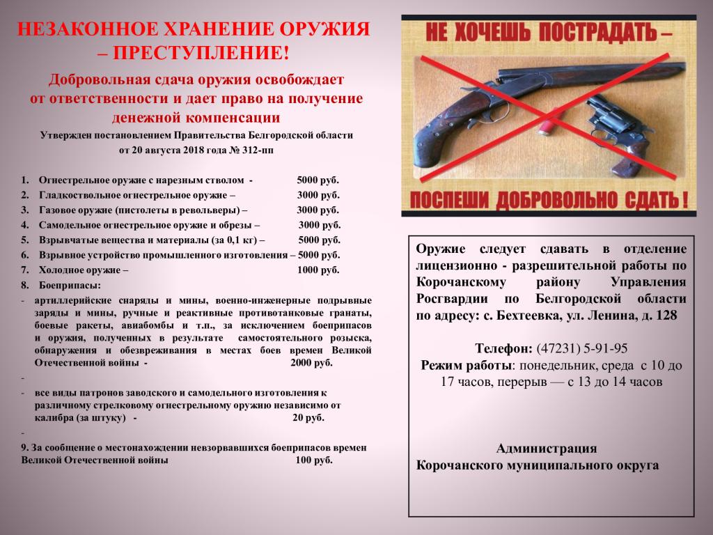 Оружие следует сдавать в отделение лицензионно - разрешительной работы по Корочанскому району Управления Росгвардии по Белгородской области